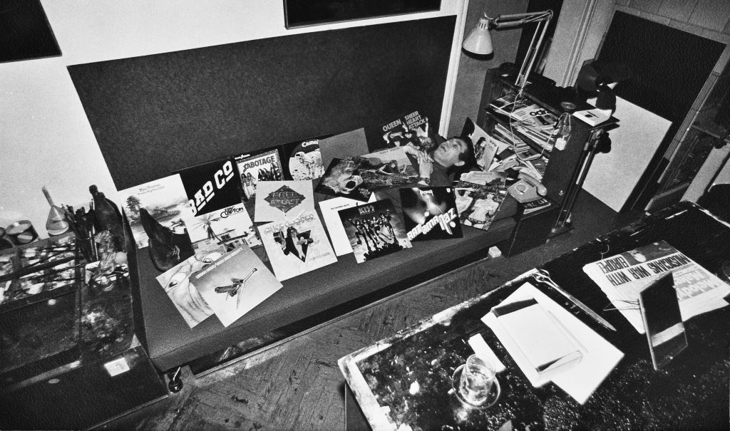 Здзислав Бексиньский позирует со своими пластинками Lynyrd Skynyrd в своей студии в Саноке, около 1976 года. Исторический музей Санока.