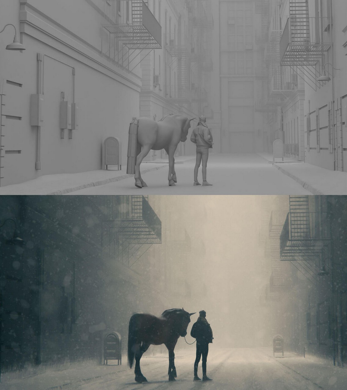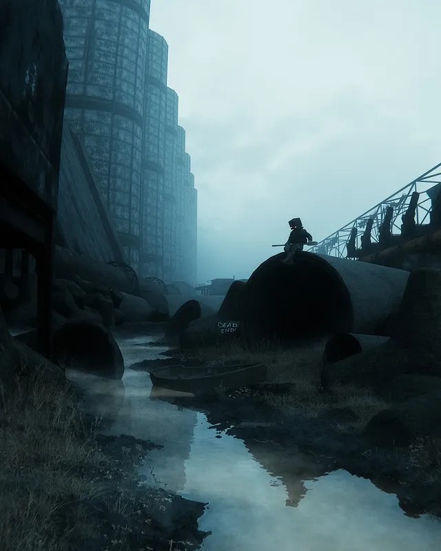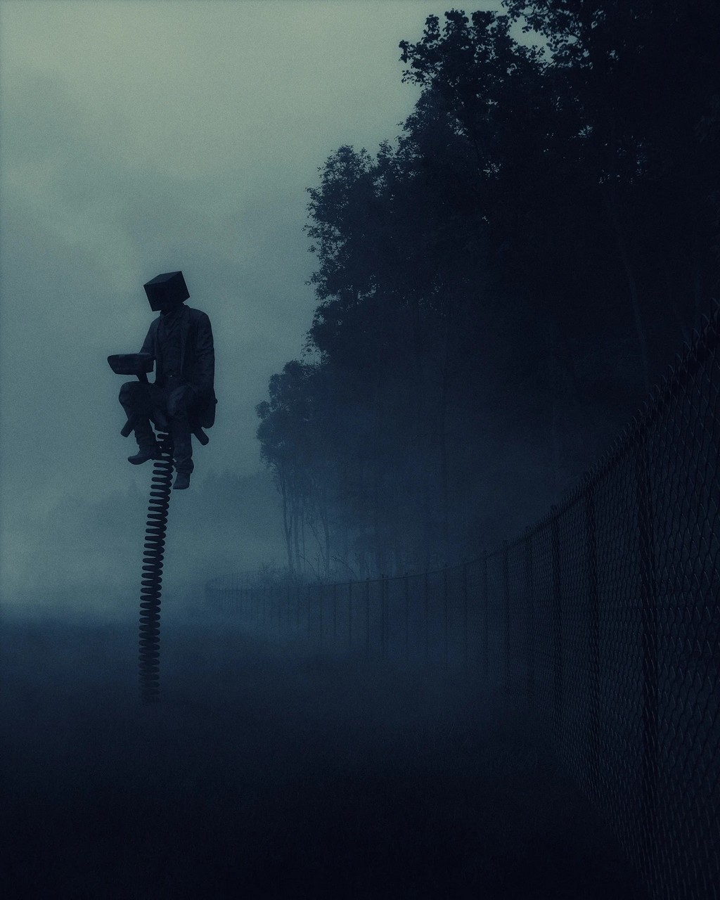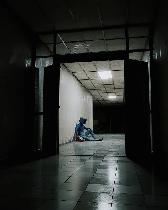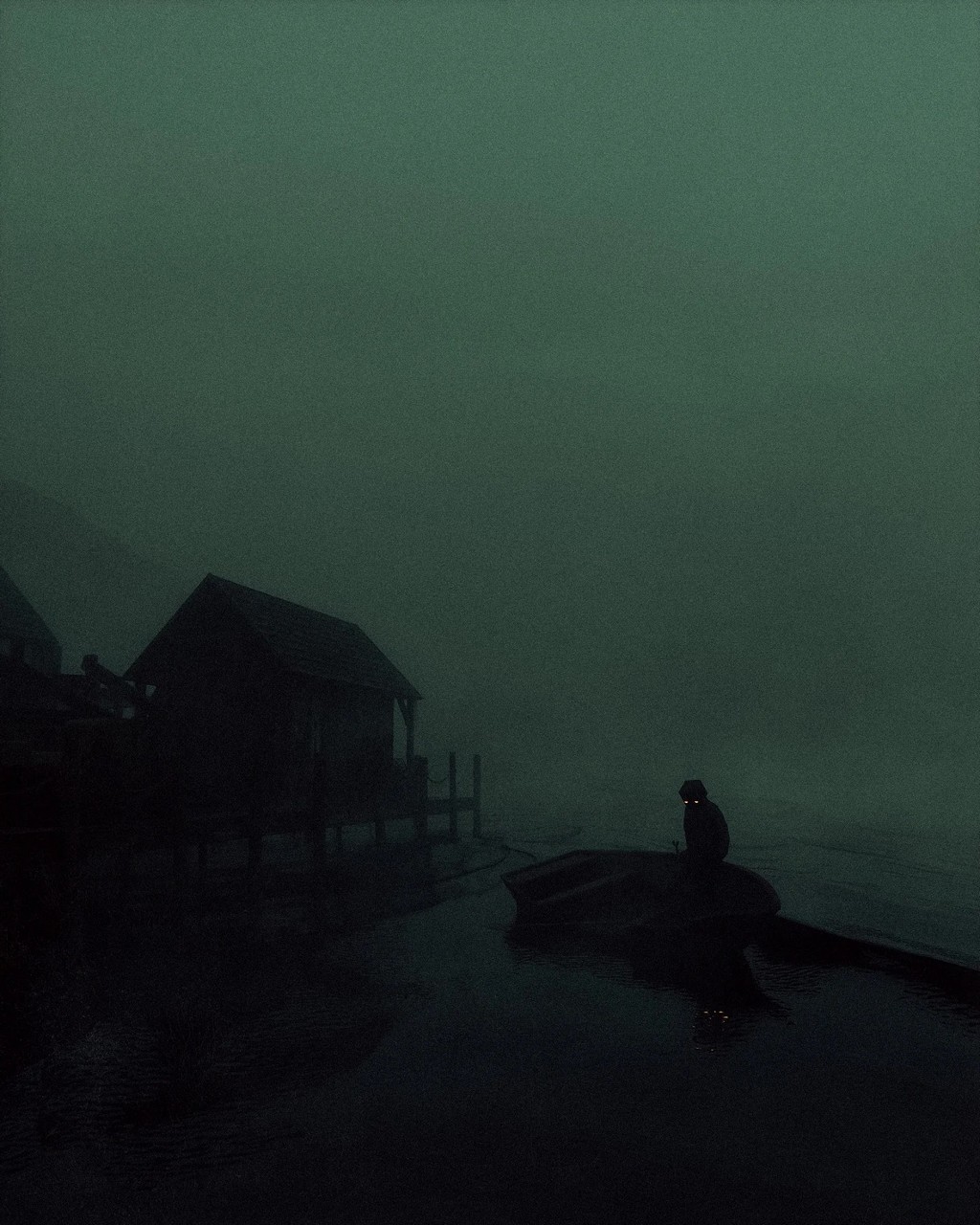 Этого канадского художника-самоучку из Монреаля, работающего в цифровом формате и известного под звучным псевдонимом Huleeb (Хулиб), в жизни Хьюго, невозможно спутать ни с каким другим 3D модельщиком. Трехмерные фотонатуралистичные картины, насколько мрачные, настолько же и атмосферные, он создаёт ежедневно на протяжении уже шести лет и делится ими на своей странице в Инстаграм. То, что начиналось как способ изучения 3D-графики в Blender, вскоре переросло в увлечение, а затем и в страсть. Создание темных и завораживающих миров, туманных пейзажей погруженных в ночную мглу, безлюдные дома и улицы с непременным таинственным персонажем, имеющим вместо головы пустой куб - своего рода визитная карточка художника. Кто это кубоголовое существо одетое в длинный милитаристский плащ и с ранцем за спиной вряд ли ответит и сам автор - то ли он пришелец с другой планеты, то ли выживший в результате апокалипсиса представитель человеческой расы, а может это киборг-андроид выискивающий оставшихся в живых людей - решать только вам. Ясно лишь одно - Хулиб просто ловит кайф от своего персонажа. Часто этого кубоида можно видеть за вполне мирным занятием вроде рыбалки или за приготовлением еды, но, временами, можно застать и в вызывающей дрожь непривычной для людей обстановке. Именно этот мистический привкус делает картины лакомым кусочком для любителей романтики Cталкера Тарковского и других запретных "зон" из НФ. Да, тут есть где разгуляться фантазии!