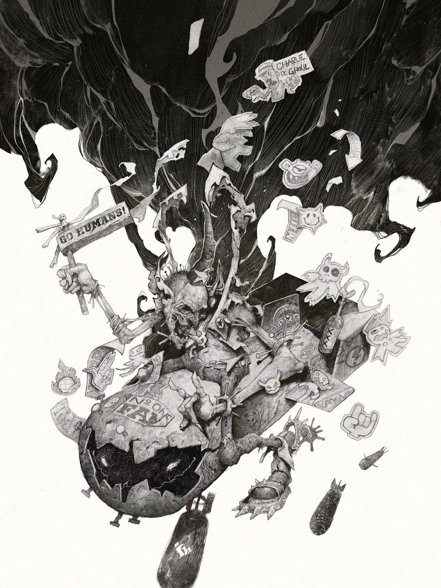 Я постоянно ищу луч света или юмористический акцент даже в самых глубоких пещерах воображения. Мне нравится посещать эти ментальные пейзажи и исследовать дикие сюжеты. В своем искусстве я стремлюсь воссоздать то трудно поддающееся копированию ощущение, когда попадаешь в подземелье и слышишь голос босса. Меня всегда тянуло к более мрачной стороне изобразительного искусства, но для меня она скорее таинственная и притягательная, чем угрюмая и безрадостная. Я постоянно ищу луч света или юмористический акцент даже в самых глубоких пещерах воображения. Мне нравится посещать эти ментальные миры и исследовать невероятные сюжеты.