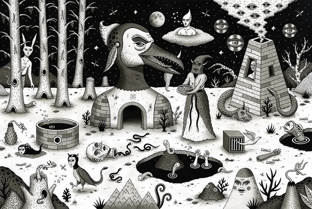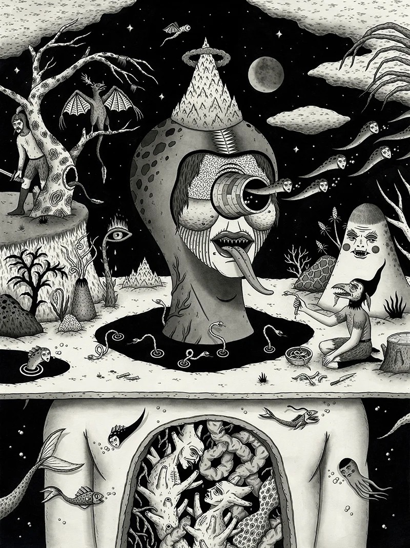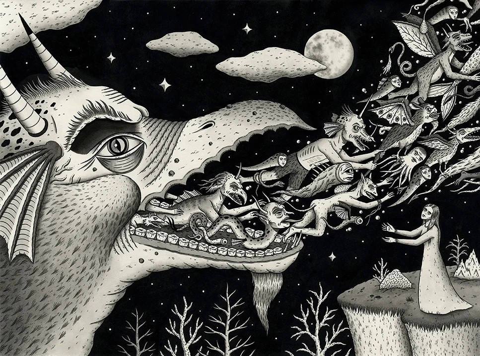 Южнокорейский художник Джон Макнейр родился в Сеуле и вырос в пригородах юго-восточного Мичигана, недалеко от Детройта. В 2005 году он окончил Мэрилендский институт искусств, где получил степень бакалавра изобразительных искусств в области иллюстрации. Поэксперемнтировав с цветами, разными направлениями, техниками и материалами, художник нашел для себя увлекательной работу с индийскими чернилами, тем, чем его картины собственно и выделяются среди многих картин подобного жанра. Он отказался от использования микроручек и карандашей, а использование старой пожелтевшей бумаги добавило еще больше эстетики "мрачного" в его монохромные иллюстрации.